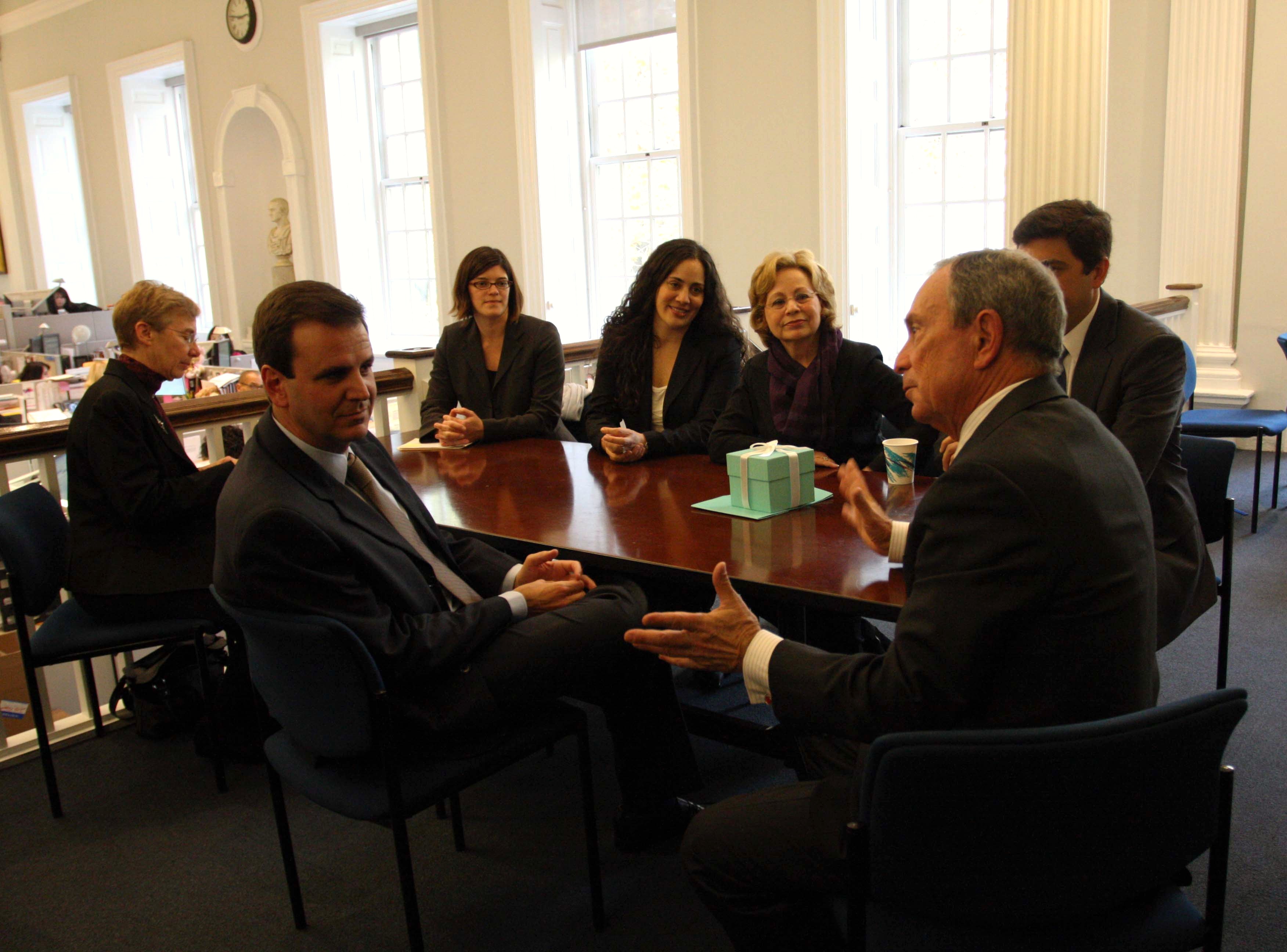 Sobre educação, ambos falaram das mudanças que têm sido feitas no sistema de ensino em suas cidades com o foco na qualidade. A prefeitura de Nova York se interessou tanto pela experiência do programa "Escolas do Amanhã" - que tem levado um tratamento diferenciado em período integral aos estudantes de 151 escolas em áreas violentas do Rio - que a secretária municipal de Educação, Cláudia Costin, foi convidada a apresentar na quinta-feira (18/11) o projeto no Urban Education Summit (o congresso que vai discutir as inovações no sistema de ensino em todo mundo).