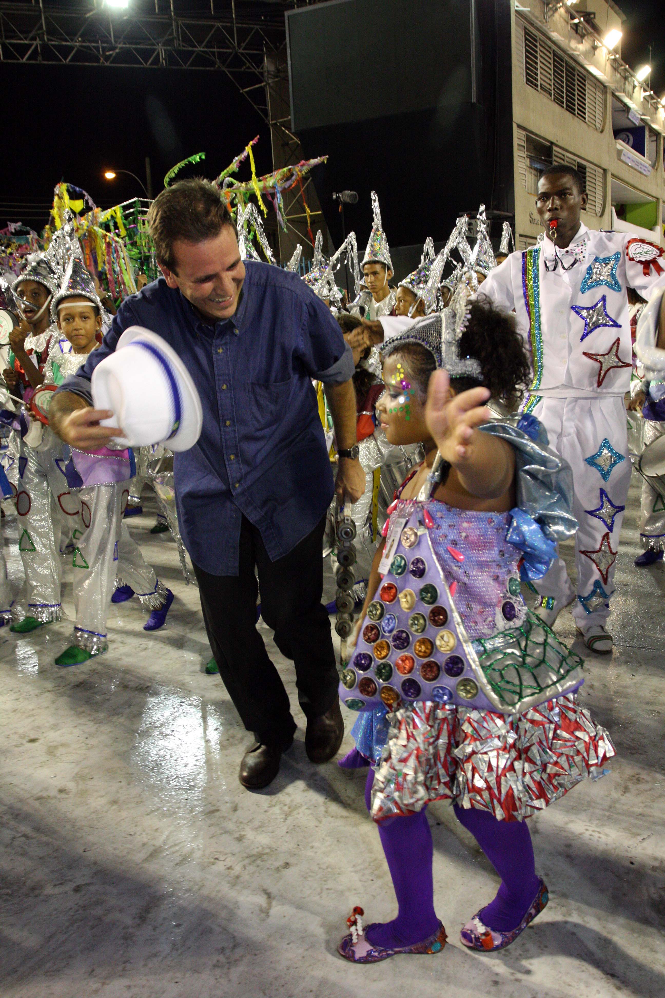 O prefeito Eduardo Paes participou nesta sexta-feira, dia 4, da abertura dos desfiles na Marquês de Sapucaí, com a Corte Real do carnaval. Ao lado do secretário de Turismo e presidente da Riotur, Antonio Pedro Figueira de Mello, o prefeito cumprimentou a todos os foliões que prestigiaram o desfile mirim e tocou na bateria da Pimpolhos da Grande Rio, que este ano trouxe o enredo "Nossos Contos". A grande novidade no desfile deste ano é que as escolas mirins apresentam enredos já levados à Avenida pelas escolas do Grupo Especial.