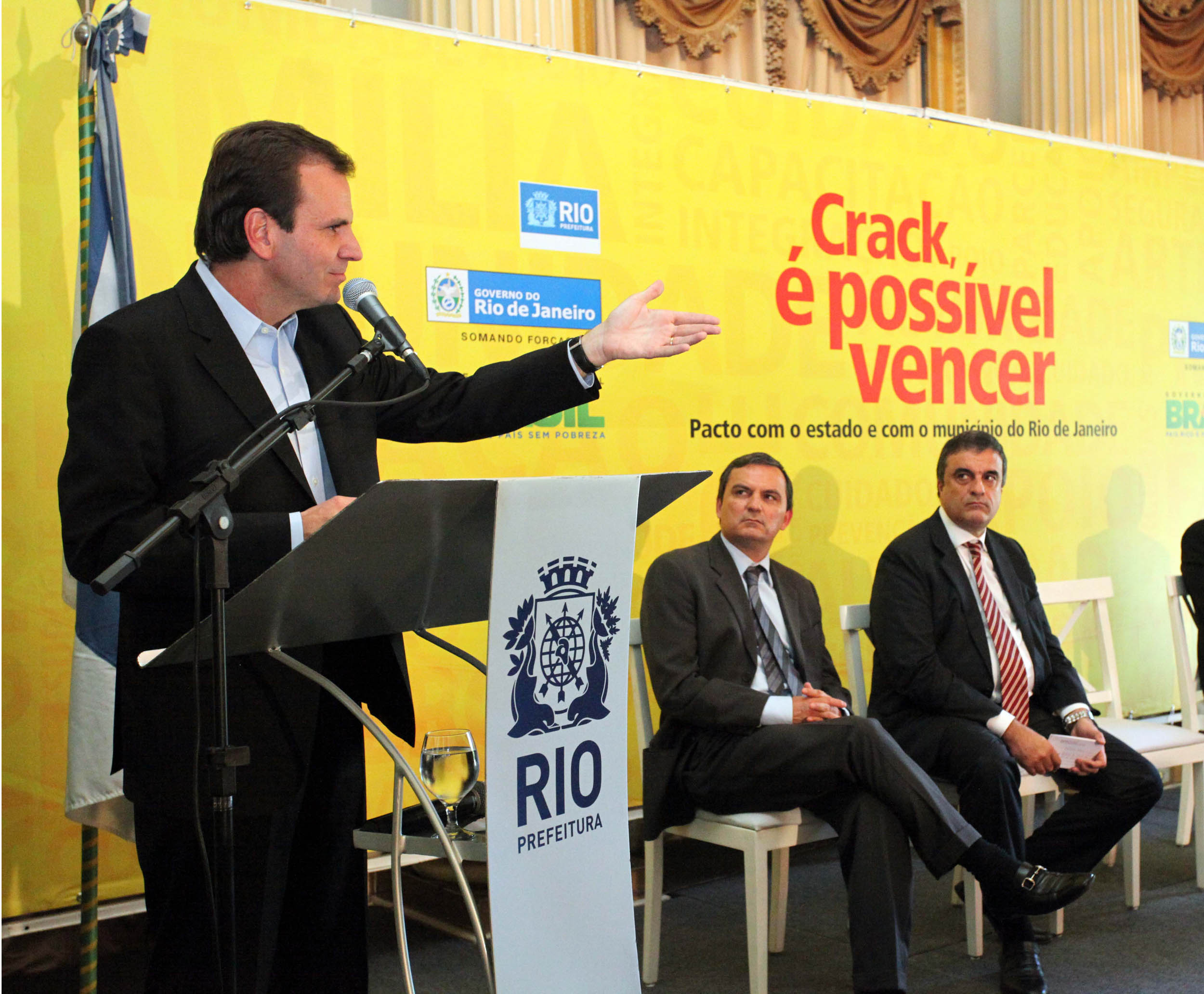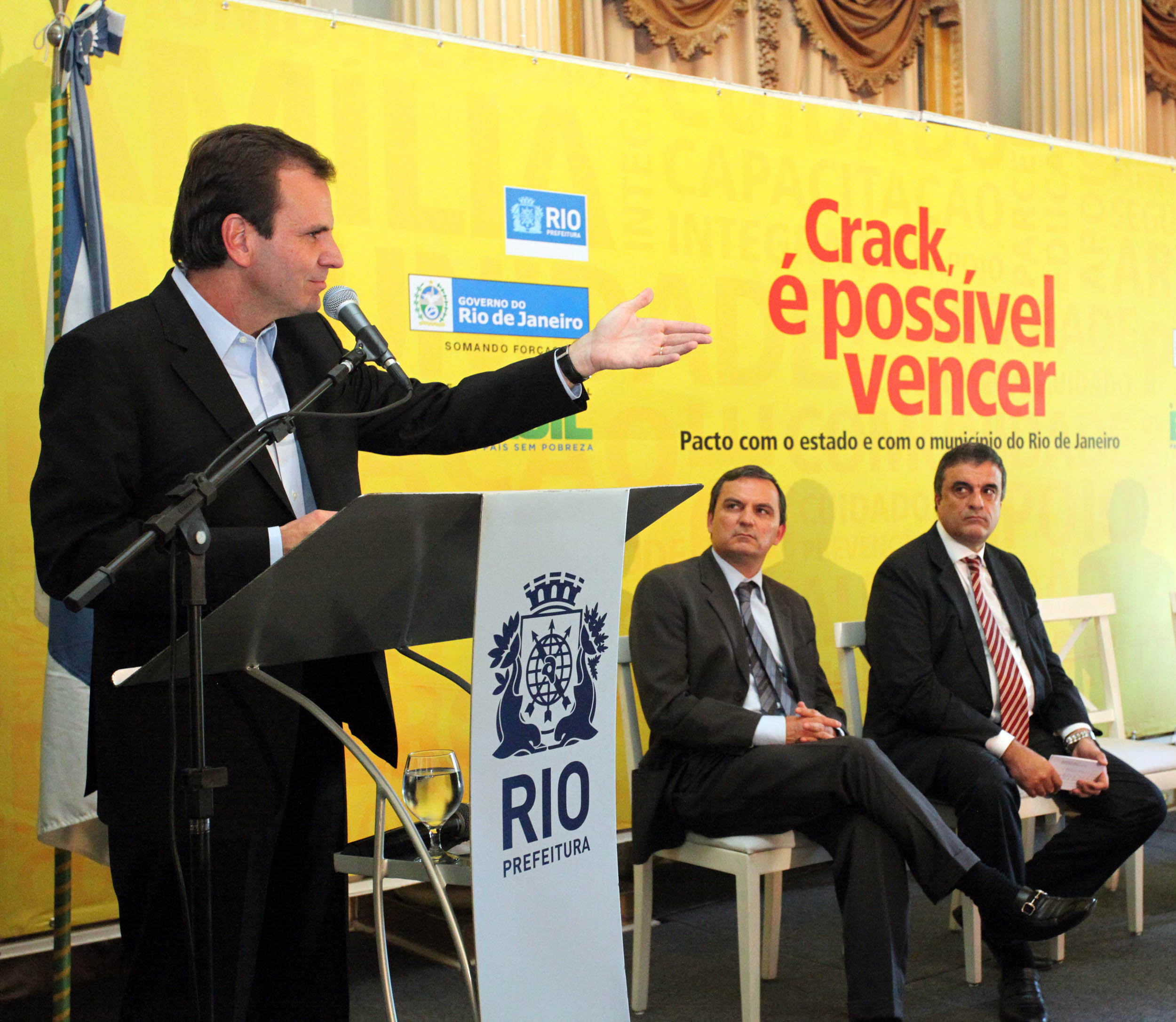 A Prefeitura do Rio aderiu ao programa “Crack, é possível vencer”, do governo federal. Na manhã desta sexta-feira, dia 13, no Palácio da Cidade, em Botafogo, o prefeito Eduardo Paes, o secretário-chefe da Casa Civil, Regis Fichtner, e os ministros da Saúde e da Justiça, Alexandre Padilha e José Eduardo Cardozo, assinaram convênio de cooperação entre os governos municipal, estadual e federal para intensificar as ações de combate ao consumo da droga na cidade.