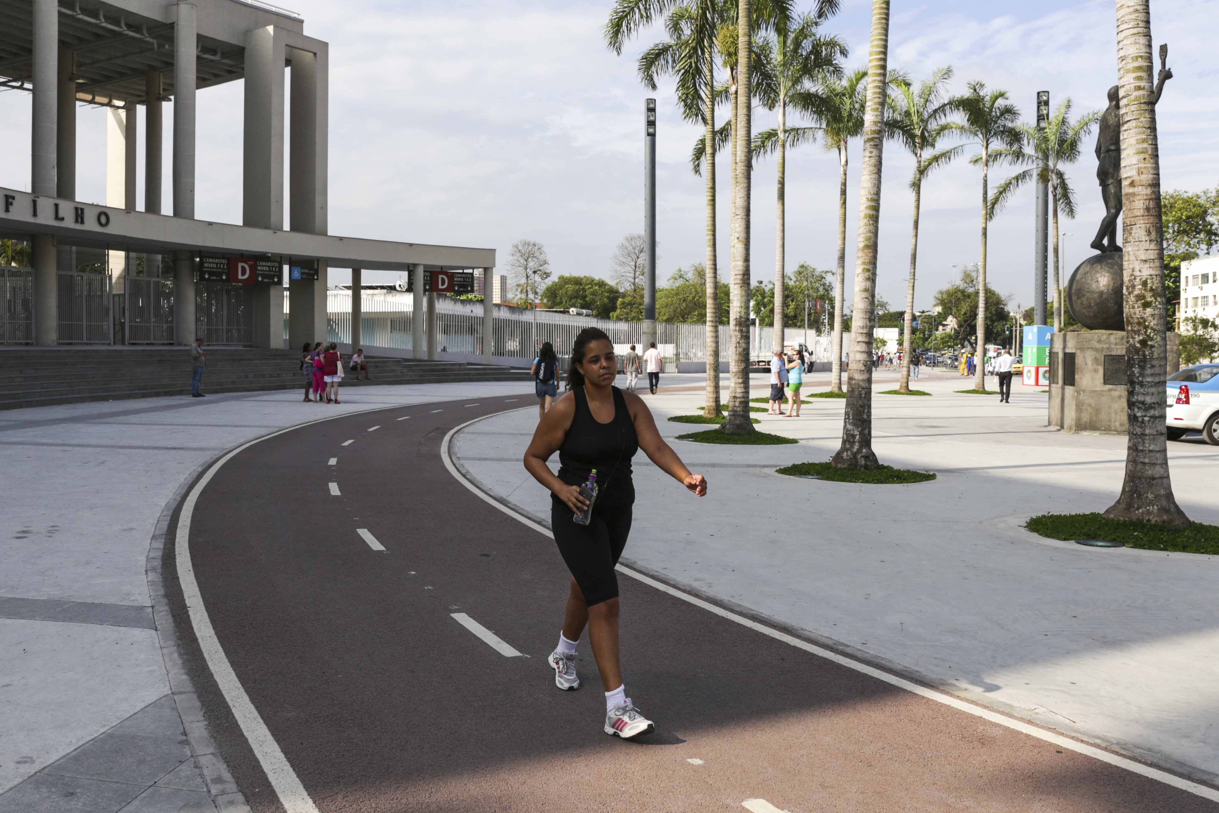 As calçadas do entorno do Maracanã ganharam uma atenção especial dos técnicos da Secretaria Municipal de Obras. Foram aplicadas armações de laje, em ferro, sob o concreto dos passeios, o que garantiu um nivelamento adequado à prática da corrida e à caminhada.