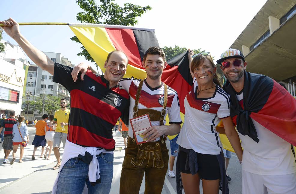 Devidamente paramentados com as cores de seus países, alemães e franceses estavam eufóricos com a possibilidade de enfrentar o Brasil nas semi finais. Em um grupo de 20 amigos de Stuttgart, o alemão Dyrk Schwedliñho, 35 anos, disse que todos ficariam no Rio para assistir à final, mesmo que tivessem de torcer para a seleção brasileira.