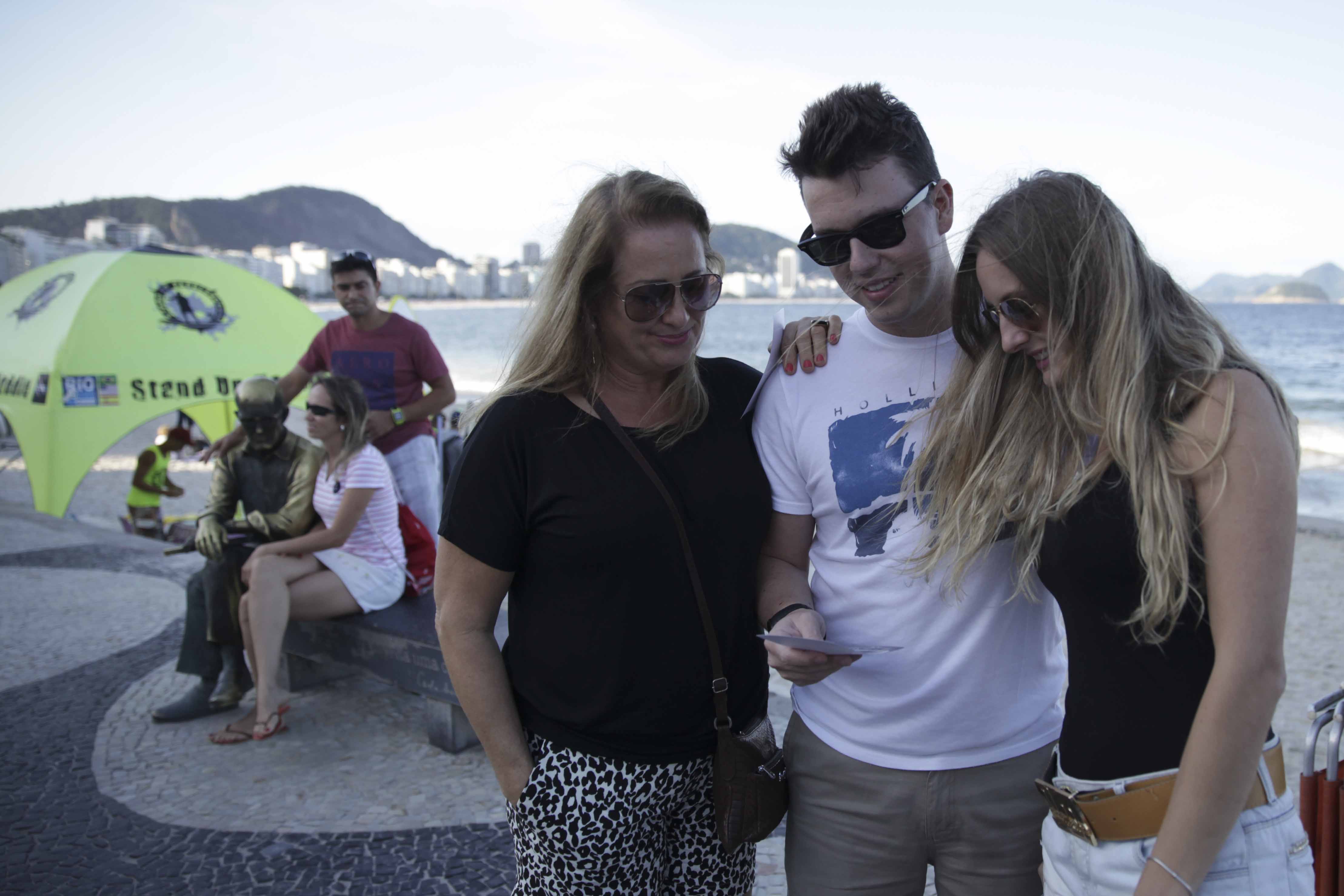 O totem com a câmera especial, montado no calçadão, também chamou a atenção dos gaúchos Marione Kollet, 55, sua filha Emília Pressi, 24, e seu genro, Eduardo Cardozo, 29. O trio embarca para Porto Alegre neste sábado (11/04) com uma lembrança especial nas mãos: