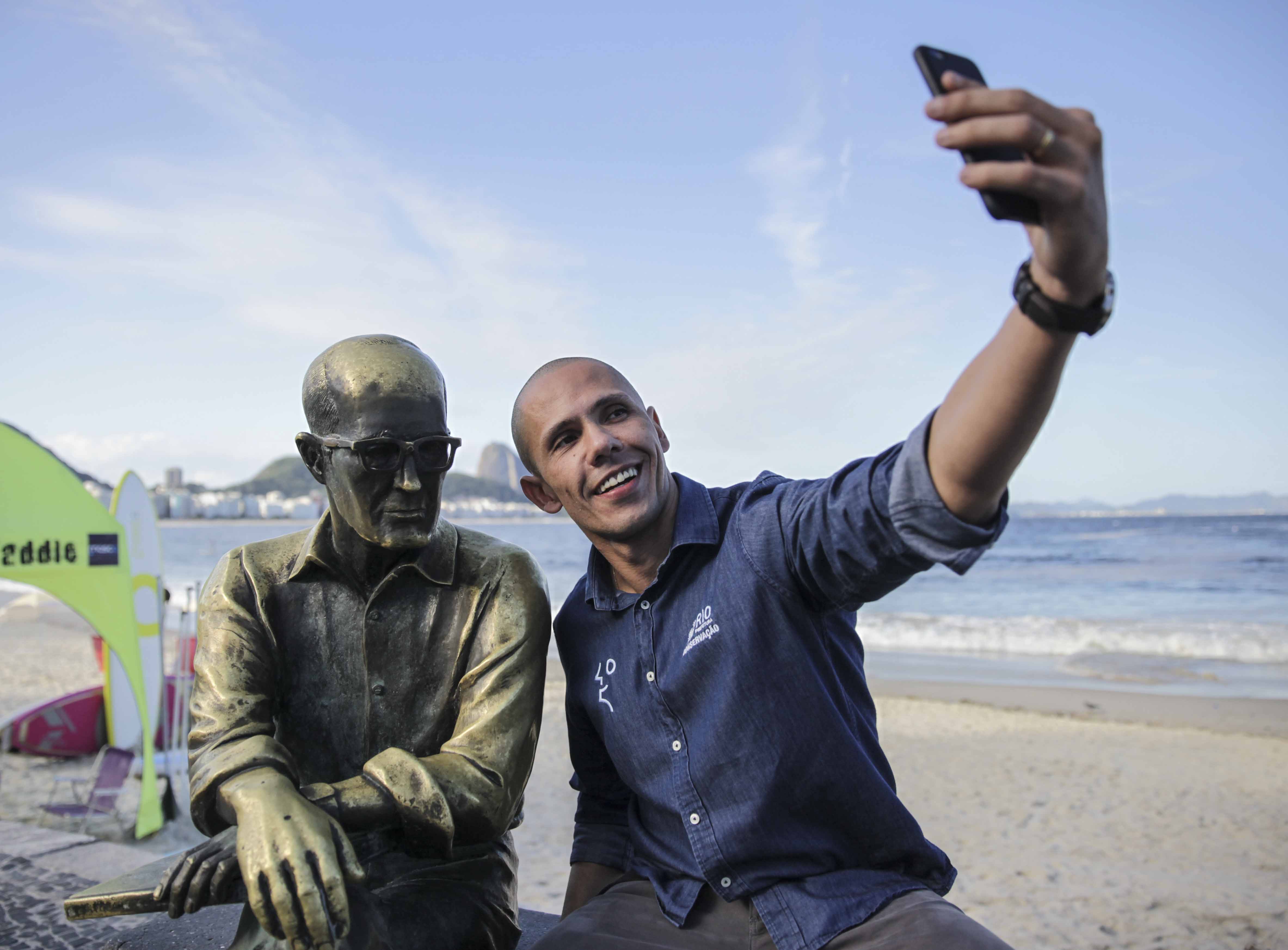 Uma ação da Prefeitura do Rio em homenagem aos 450 anos da cidade voltou às ruas nesta sexta-feira (10/04), com objetivo de aumentar a interação da população com as obras de arte em áreas públicas. A segunda edição do evento "#Monumento Selfie" aconteceu no calçadão da Avenida Atlântica, em Copacabana, junto à estátua do poeta Carlos Drummond de Andrade. A primeira experiência ocorreu em fevereiro, na Praia do Arpoador, no monumento que simboliza o cantor e compositor Tom Jobim.