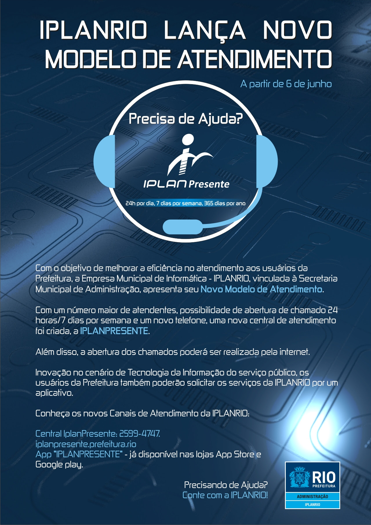 Com o objetivo de melhorar a eficiência no atendimento aos usuários da prefeitura, a Empresa de Informática Municipal (Iplan-Rio) apresentou o seu novo modelo de atendimento, que entrará em operação na segunda-feira (06/06).
