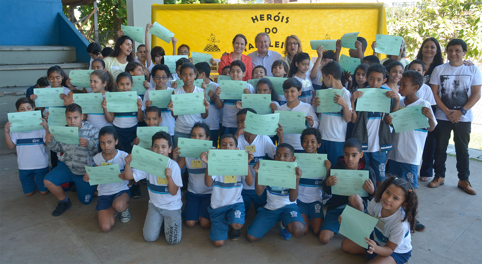 É comum que aulas de xadrez sejam direcionadas para os melhores alunos, com o objetivo de exercitar a capacidade de tornarem-se vencedores. No entanto, sob o olhar da professora de Educação Física, Fátima Bispo, o rumo deste esporte ganhou outra vertente: as aulas deveriam ser dadas para os estudantes com defasagem entre idade e a série em que estudam. Foi assim que tudo começou há 12 anos na Escola Municipal Frederico Eyer, na Cidade de Deus, e hoje beneficia cerca de seis mil alunos em 20 escolas na Zona Oeste. A Secretaria Municipal de Educação pretende expandir ainda mais o projeto Heróis do Tabuleiro para atender toda a rede de ensino.