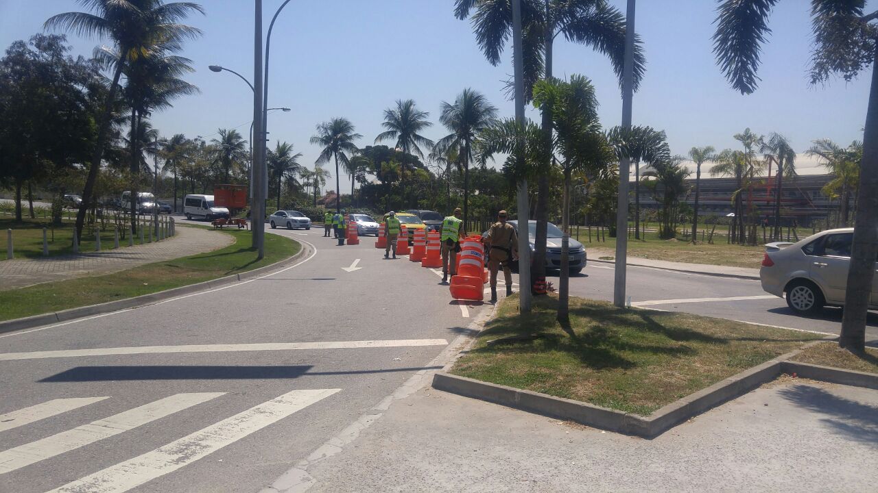 O esquema de trânsito implantado nos bairros da Barra da Tijuca, Recreio dos Bandeirantes, Vargens e Jacarepaguá conta com a participação de 550 homens/dia. São utilizados ainda 35 painéis de mensagens variáveis móveis e fixos que informam sobre os horários dos diversos fechamentos, as rotas alternativas e as restrições de estacionamento. O Centro de Operações Rio (COR) realizará o monitoramento de toda a área do evento com 54 câmeras, permitindo que técnicos da CET-Rio façam ajustes na programação dos sinais de trânsito, caso haja necessidade. É importante ressaltar que não foram criadas áreas de estacionamento e os veículos parados irregularmente serão rebocados.
