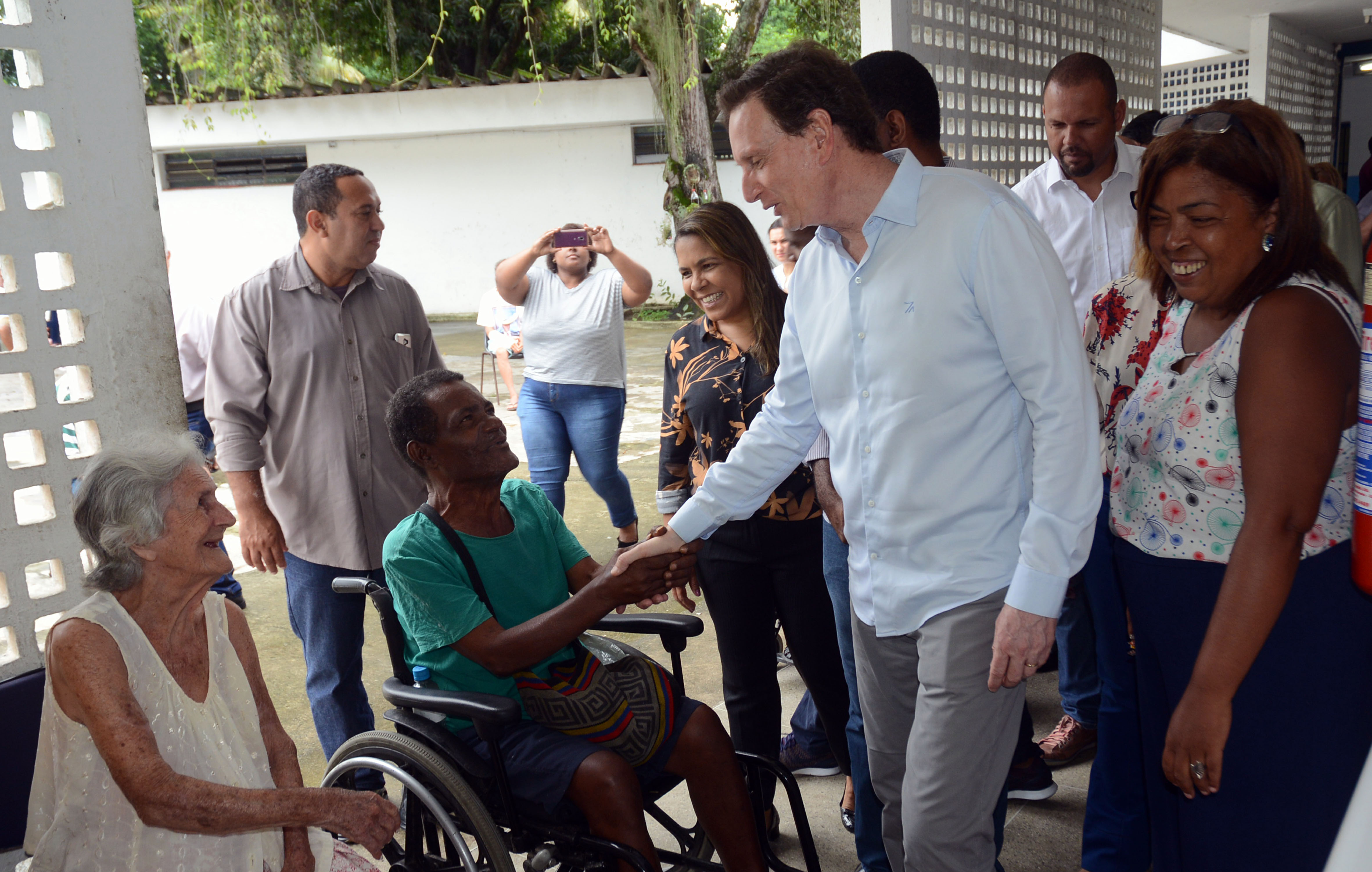 O prefeito do Rio Janeiro, Marcelo Crivella, acompanhado da subsecretária de Proteção Básica e Especial, da Secretaria Municipal de Assistência Social e Direitos Humanos (SMASDH), Claudia Lasry, visitou na manhã deste sábado (6) o complexo de abrigos Stella Maris, na Ilha do Governador. No espaço, que atende atualmente 369 pessoas, entre homens, mulheres e idosos, funcionam a Unidade de Reinserção Social Ilha do Governador e as Centrais de Recepção Tom Jobim – para adultos e famílias – e Carlos Portela – destinado à 3ª idade. Durante a visita, Crivella percorreu todas as instalações dos abrigos, conversou com os acolhidos e elogiou a postura e o cuidado dos funcionários.